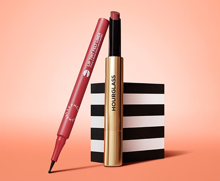 Konturka a rtěnkaIdeální kombinace pro rty: konturovací tužka na rty a lesk na rty, který ji doplňuje, tvarují vaše rty a dodávají jim ještě více barvy a hebkosti.