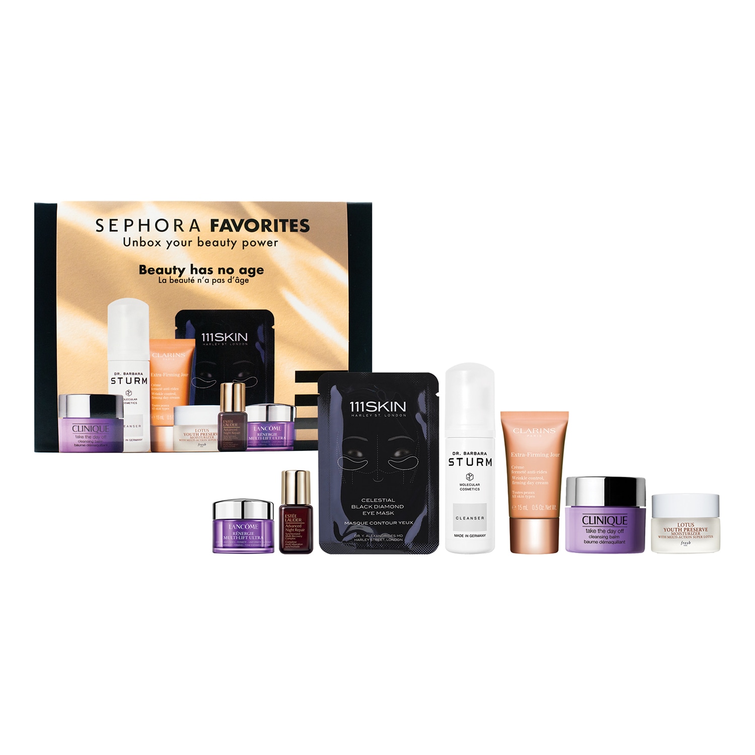 V této nové edici vám Sephora Favorites nabízí kompletní péči, která vám pomůže zmírnit viditelné známky stárnutí. Tato krabičková sada kosmetických produktů našich vybraných značek bude vaším nejlepším spojencem v péči o vaši pleť.