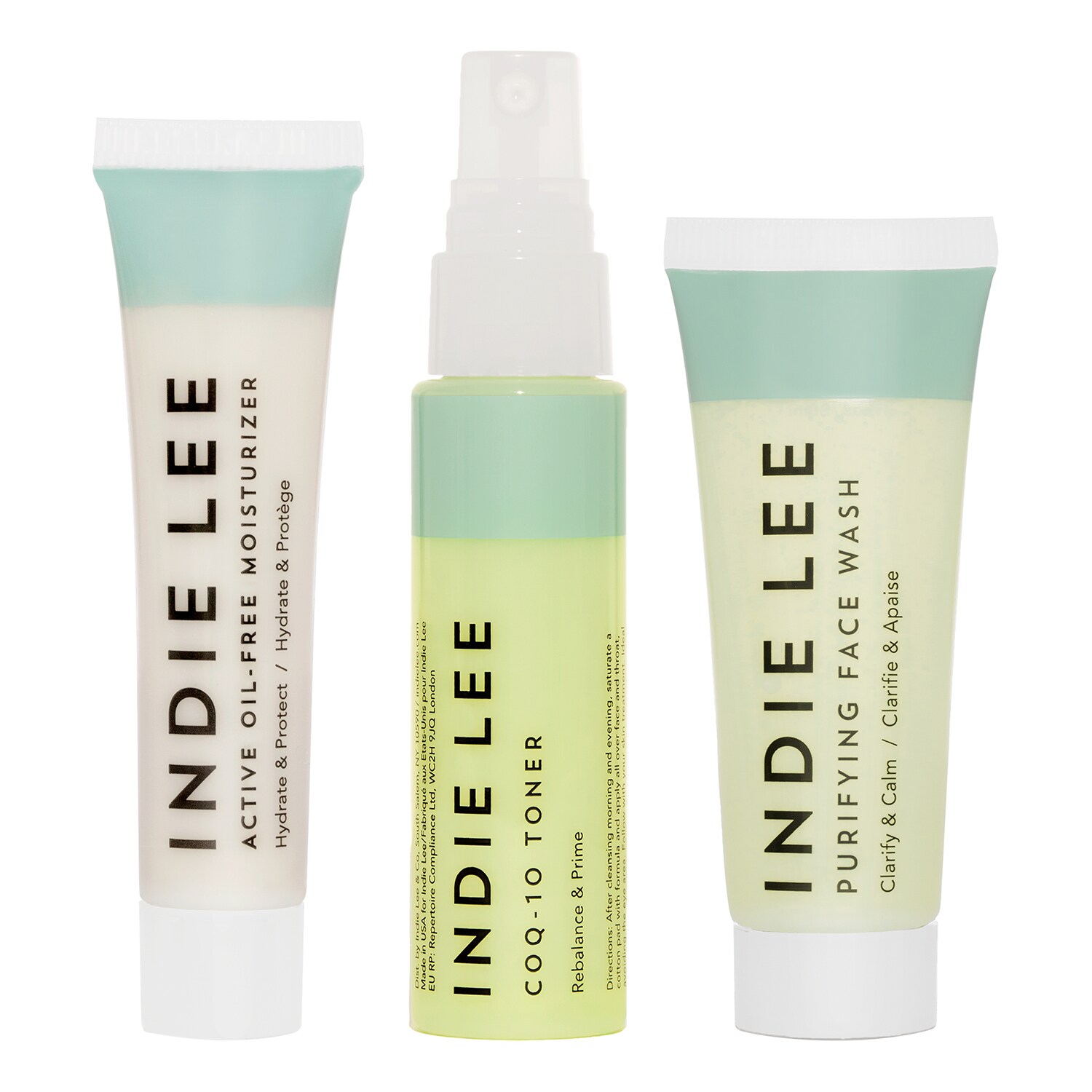 Indie Lee makes quality products, and this set is no exception. Purifying cleanser: almost has no scent. A little drying for my already very dry skin. Moisturizer: Not sticky, and has kind of the same smell as the cleanser. COQ-10 Toner: Best. thing. ever. The scent is very pleasant. It also came with a little package of the I Wake Eye Serum.