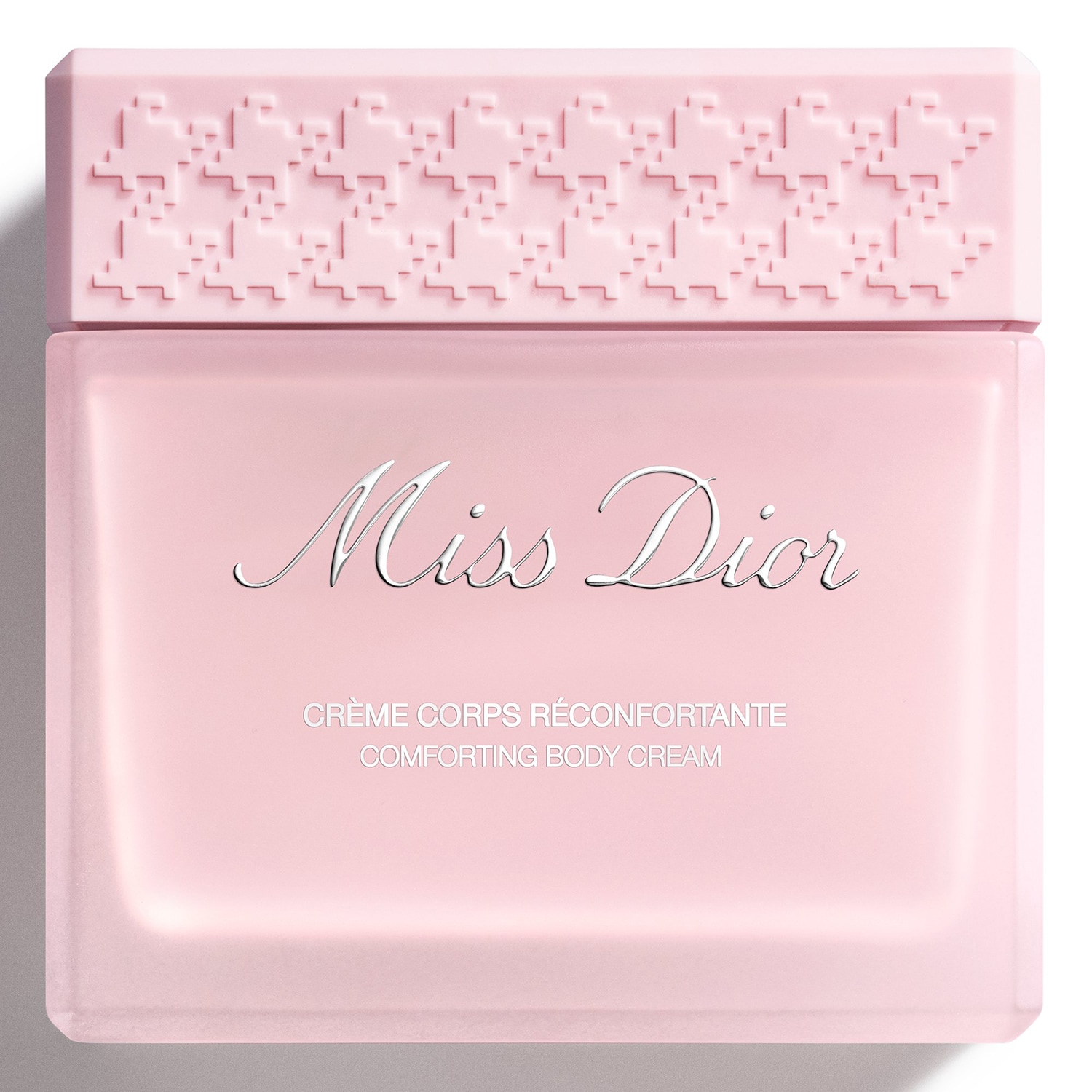 Lahvičku z matného skla s víčkem s hedvábně matným povrchem zdobí motiv kohoutí stopy, nadčasový symbol řady Miss Dior.